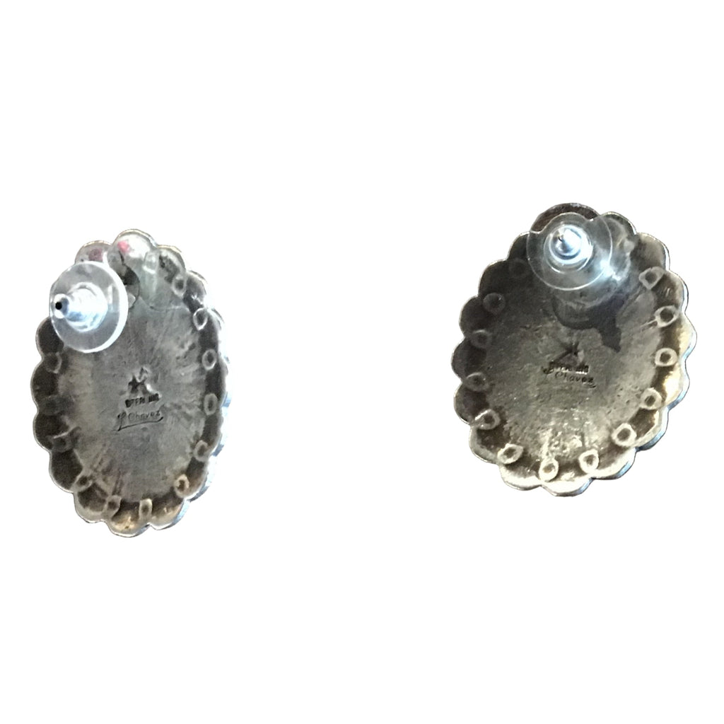 Beautiful Sterling Silver and Coral Post Earrings Signed by Native American Jeweler L Chavez