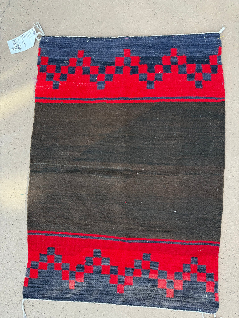 Bold Red Wool Rug, featuring dark chocolate brown and grey. Recently cleaned and mothproofed. Probably 50 years old. Can be used on floor or wall decoration.