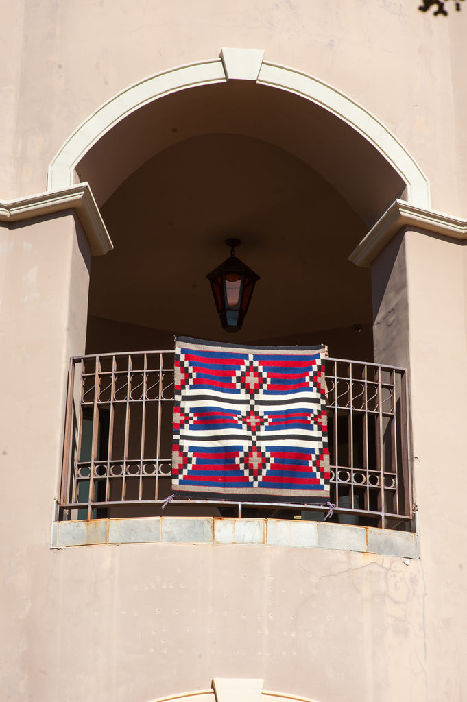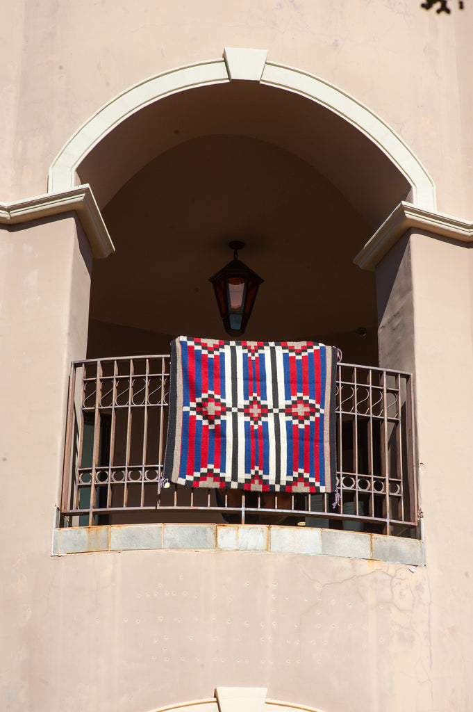 Chief's Blanket Navajo Rug with stepped full, halved, and quartered diamonds in red, white, blue and black.Considered contempory ,so from thr 70’s,80’s or 90’s.