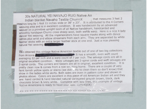 Yei Navajo Rug, Framed Pictorial Textile 23"x38.5"