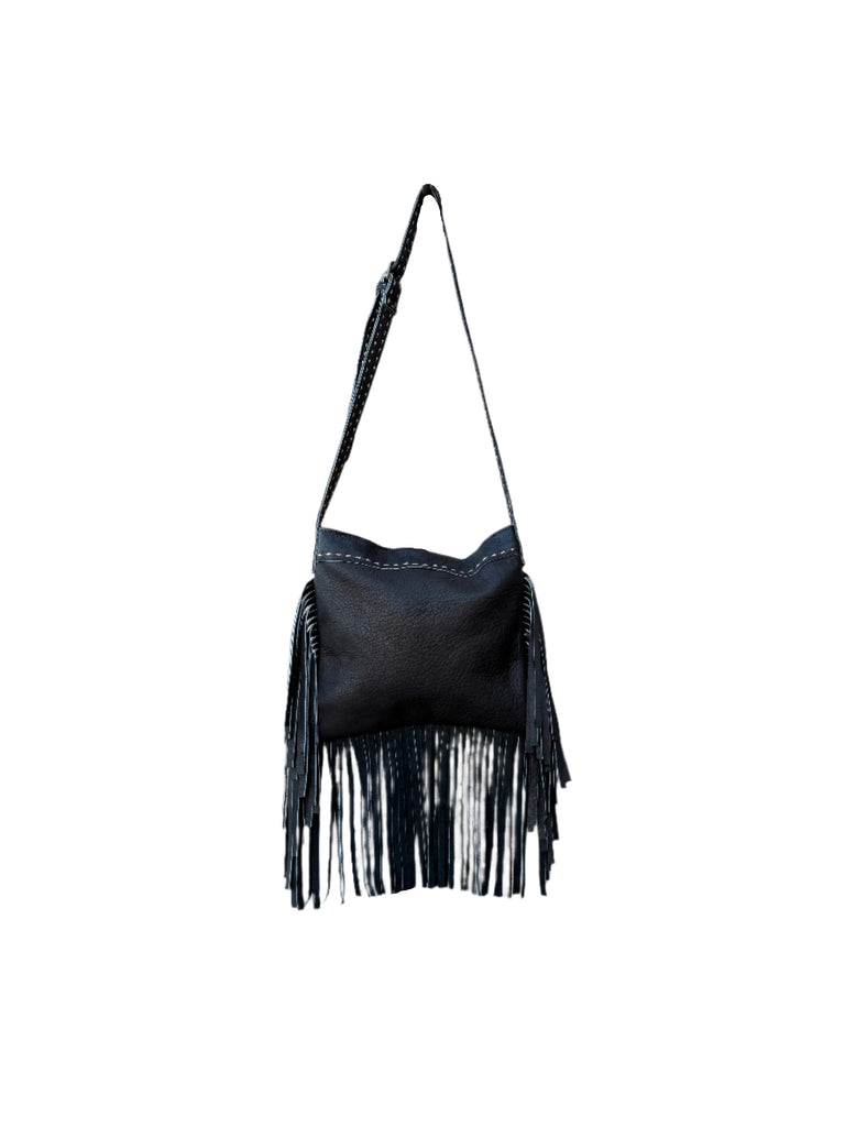 An oversized, cinch-strap bag made from a one-of-a-kind Navajo rug and premium leather. Ideal for travel or everyday essentials with durable structure and elegant Southwest character.