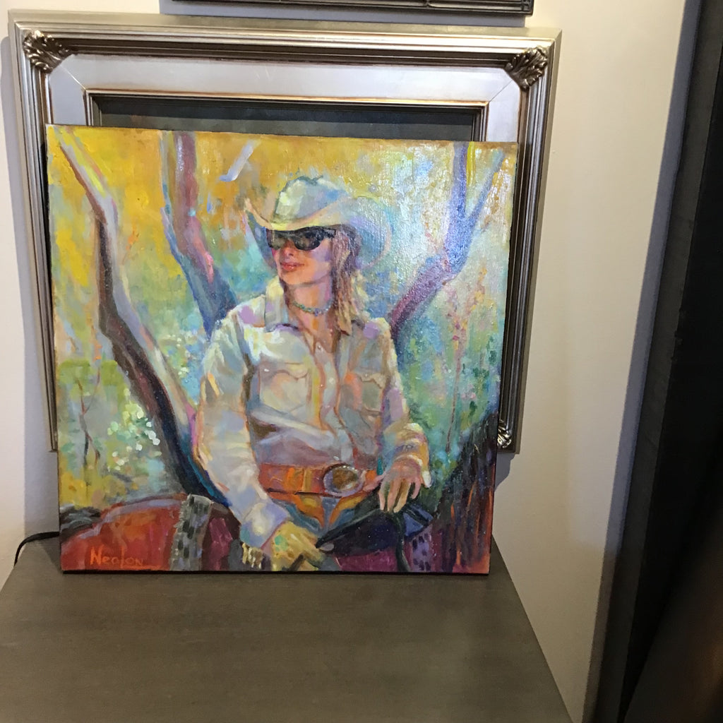 Original oil painting by Baylee Nealon, “Empire Ranch Beauty “, 24”x24”.