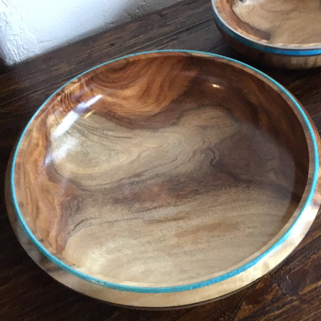 Woden bowl with turquoise - is backordered and will ship as soon as it is back in stock.