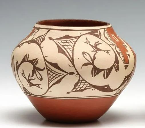 The olla of traditional form with birds within swirl designs signed Gloria Gachupin